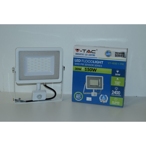 Προβολέας LED με ισχύ 30 Watt και φωτεινότητα 2400Lm. Διαθέτει αισθητήρα κίνησης που τον καθιστά ιδανικός για εφαρμογές ασφαλείας και για εξοικονόμηση ενέργειας.